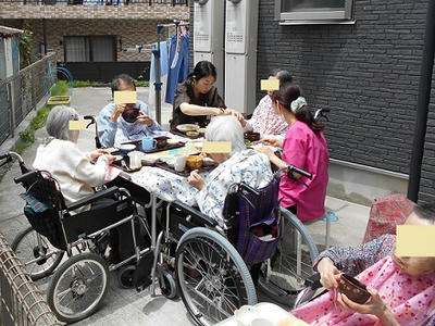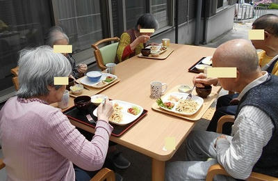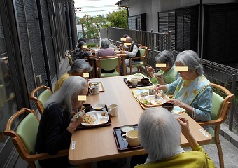 本日はお天気が良かったので、1階2階合同でお食事会を開きました。