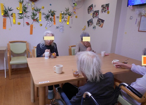 おやつは入居者が七夕の短冊に『あんこがたくさん食べたい』と書かれた方がいらっしゃって願いが叶ったと喜んで下さいました。