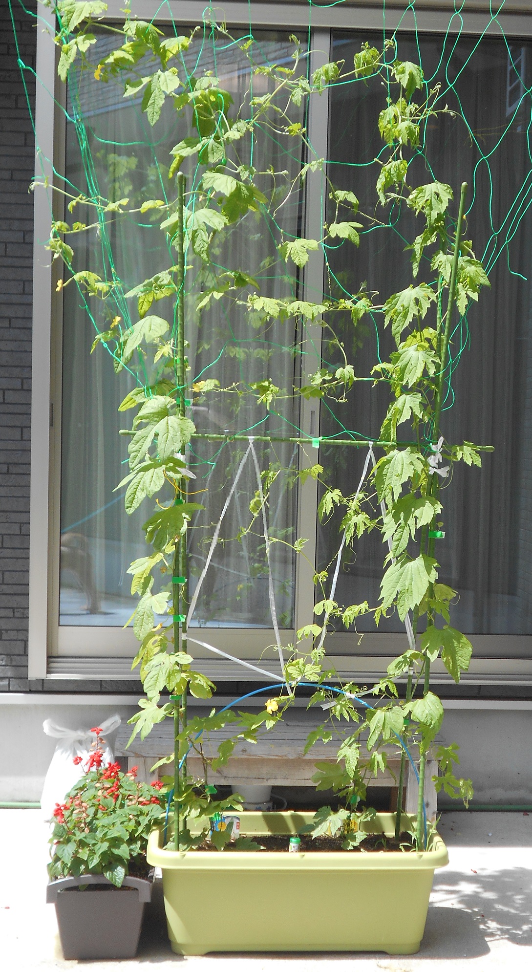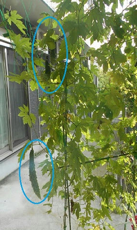 このところ雨が続き、入居者様と一緒にお水をあげる事が少なくなり、少し残念ですが、ゴーヤはどんどん成長してくれています。