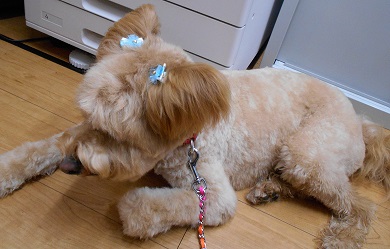 セラピー犬まろんが専門学校のカットモデルとしてトリミングをしてもらいました。