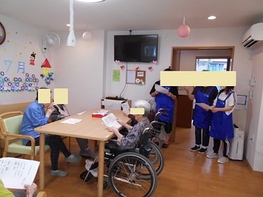 レクリエーションの時間には七夕にちなんだ曲をたくさん歌いました。