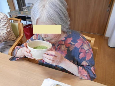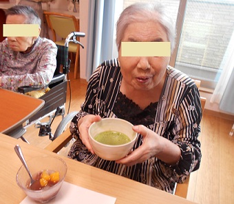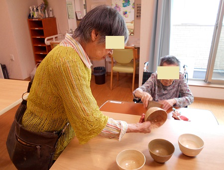入居者様に茶碗を選んで頂き、職員が抹茶を点てました。