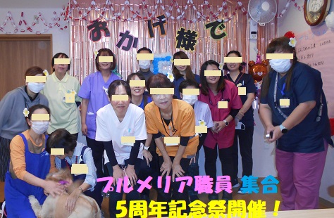 2月1日にプルメリアは5周年を迎える事が出来ました。皆様方のご協力の賜物と深く感謝申し上げます。今後ともグループホーム プルメリアを宜しくお願い致します。