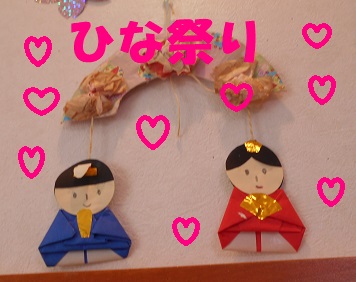 ひな祭り、誕生日会の為に菱餅をイメージした3色プリンをお出ししました。
